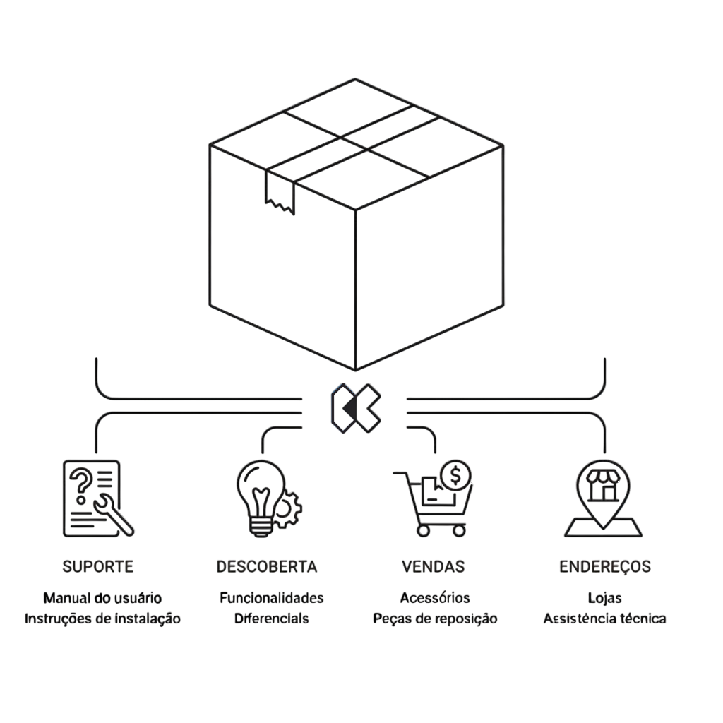 O produto físico se torna um canal de comunicação interativo, permitindo que os clientes encontrem informações facilmente por conta própria.